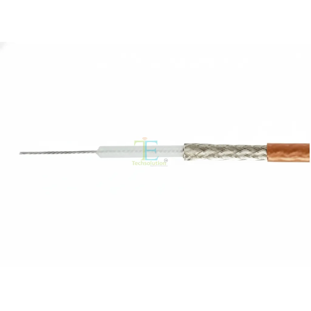 RG 179 is a 75 Ω coaxial cable designed for stable, low-loss signal transmission in high-frequency and precision electronic applications.It features a silver-plated copper conductor, PTFE dielectric, and a robust brown FEP jacket for dependable performance. Technical Specifications Cable Type: RG 179 Coaxial Cable Impedance: 75 Ohm Colour: Brown Inner Conductor: Silver-plated copper wire, 7 / Dielectric: Solid PTFE, 1.6 mm diameter Outer Shield: Tin-plated copper wire braiding, 16 / 5 / 0.1 (18–19) Outer Jacket: FEP (Brown), 2.54 mm overall diameter
